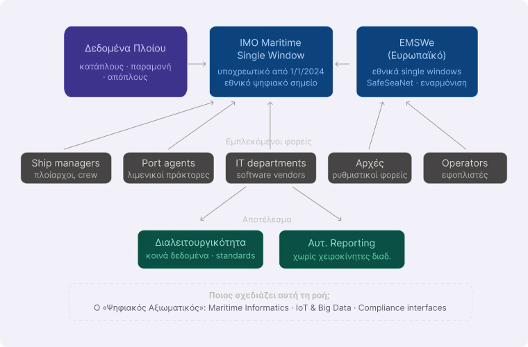Αυτές οι αλλαγές δεν είναι απλές τεχνικές λεπτομέρειες. Επηρεάζουν τον τρόπο με τον οποίο σχεδιάζονται interfaces, integrations, data flows και compliance procedures — πλοία, shipmanagers, port agents, software vendors, operators, authorities και IT departments. Με άλλα λόγια, η διαλειτουργικότητα που αναδείχθηκε στο προηγούμενο άρθρο δεν είναι πλέον αφηρημένος στόχος. Είναι καθημερινή επιχειρησιακή απαίτηση. Και αυτή η απαίτηση φέρνει στο προσκήνιο ένα νέο εκπαιδευτικό ζητούμενο: ποιος θα εκπαιδευτεί για να την κατανοεί σε βάθος;